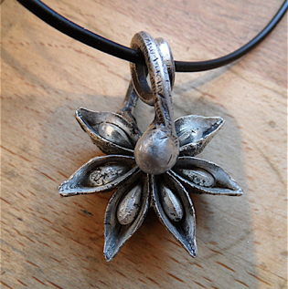 Kristi’s pendant and earrings made from a succulent burned out directly.